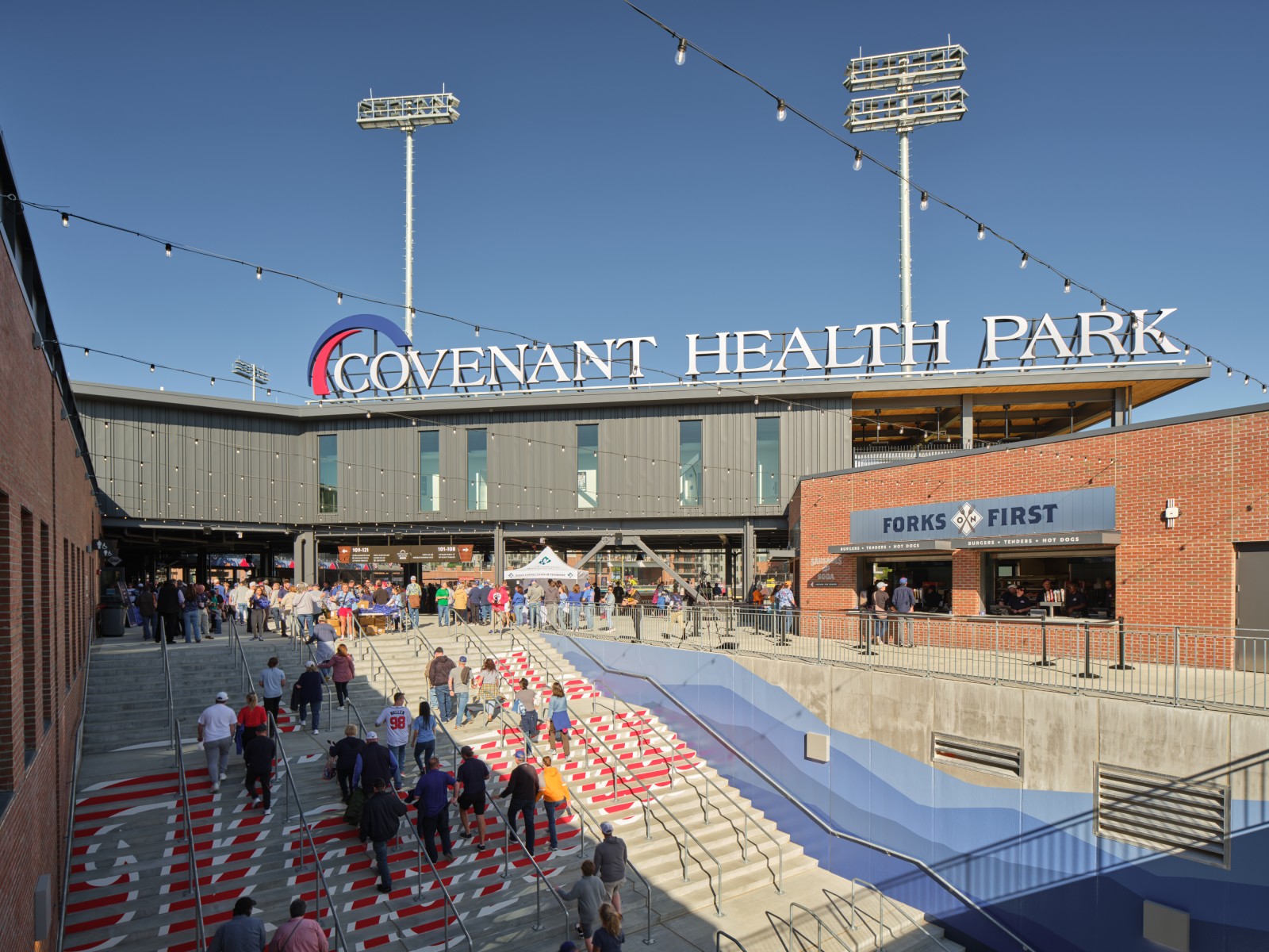 The stadium — called Covenant Health Park — is home to the AA Tennessee Smokies baseball team and One Knoxville Sporting Club’s soccer team. It seats roughly 7,000 people for sports events, and with seating on the field, can seat 15,000 for concerts. The stadium could host up to 200 events a year, including sporting events, concerts, local markets, festivals, and other events.
