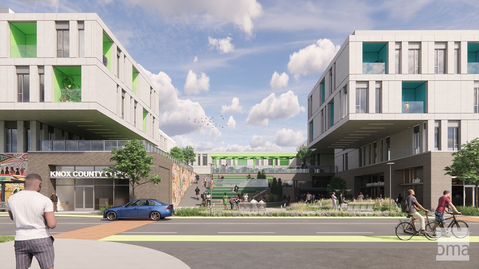 Working with the East Tennessee Community Design Center, and with community representatives from Five Points, BarberMcMurry designed this mixed-use development proposal for a parcel along Martin Luther King Jr. Avenue — taking care to respect the existing history and scale of the Five Points neighborhood and to reinforce a vibrant, walkable streetscape.