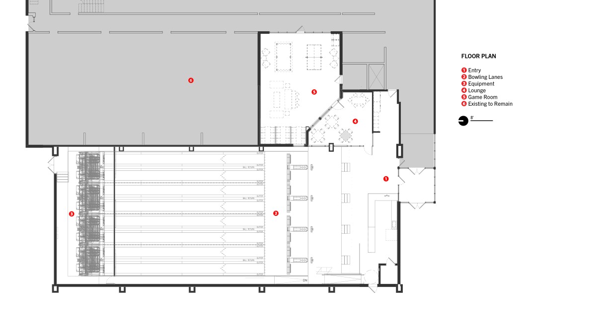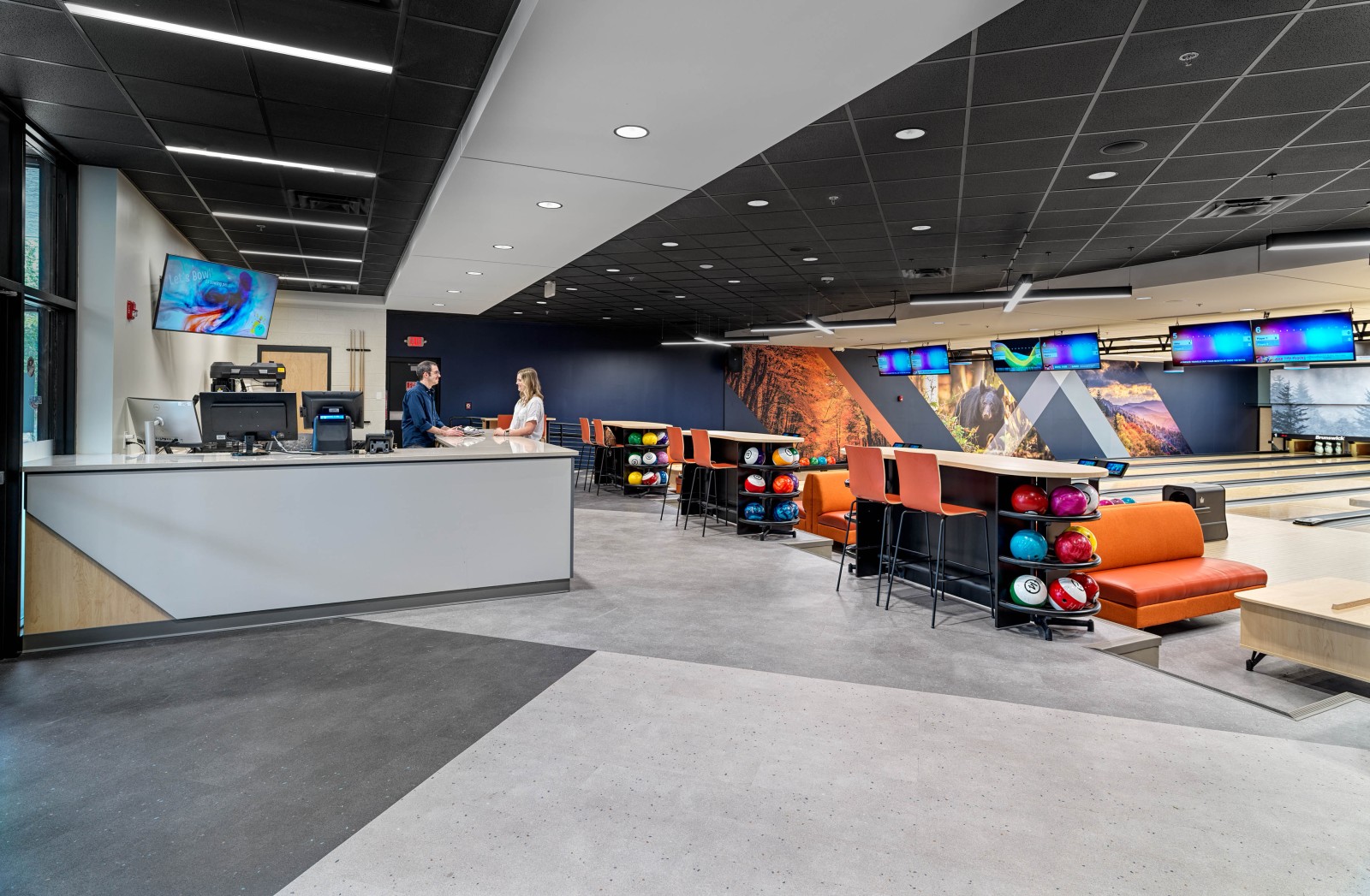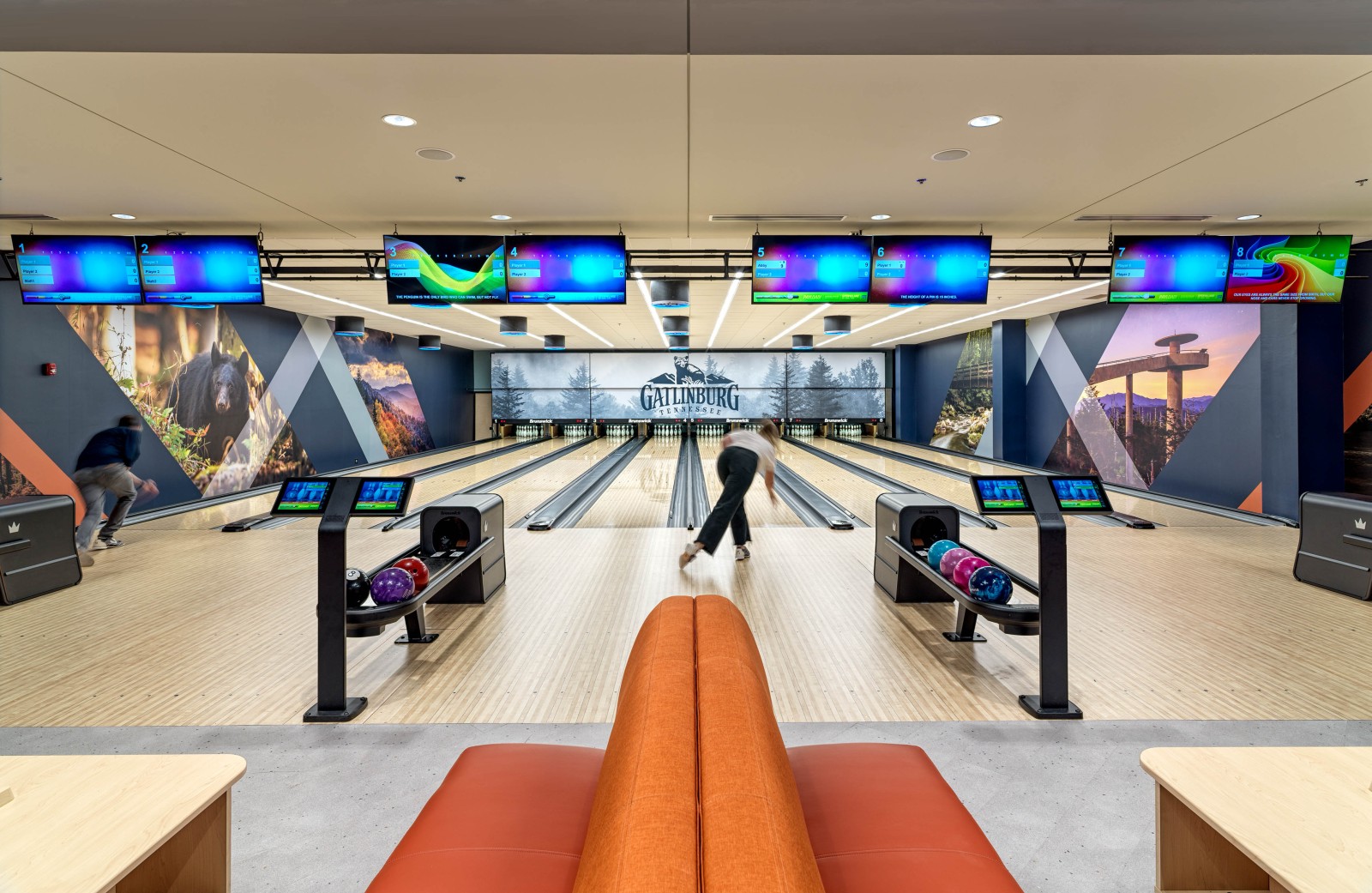 BarberMcMurry collaborated with Gatlinburg Community Center to revitalize their bowling alley, transforming it into a modern entertainment space.
