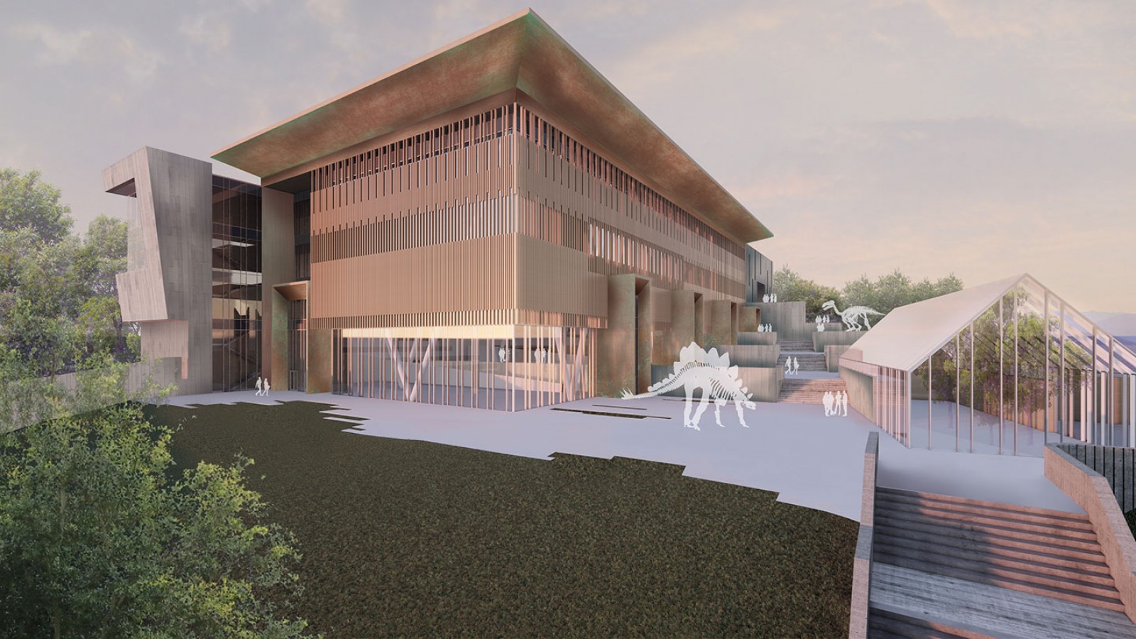 Each of these concepts worked from the same set of parameters, and each is set on the same site. The buildings range from two to four stories tall. Each design contains exhibit space, classrooms, an auditorium or amphitheater, learning spaces, and indoor and outdoor dining. All designs include pedestrian access to existing parking garages, the existing Mary Costa Plaza, and the planned Urban Wilderness connector.