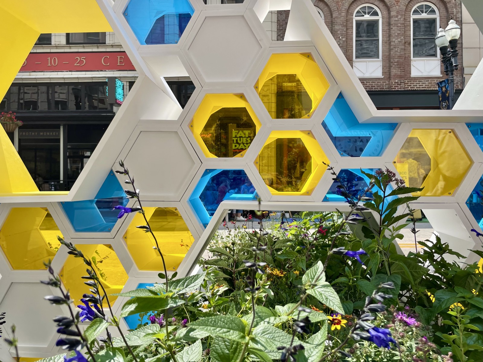 Their latest exterior exhibit, called “We Bee-Long”, will engage visitors in understanding the important role of pollination in our world, motivating them to become conservation advocates for honeybees, and educating them on the communication methods of honeybees. The first component of the We Bee-Long exhibit is The Hexagon.