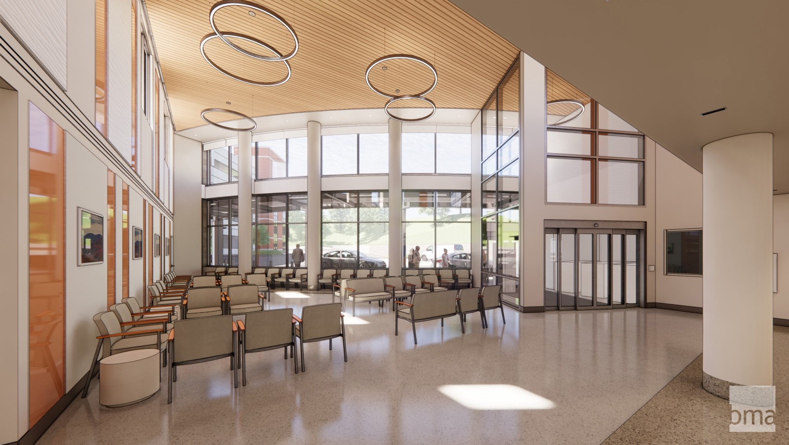 A newly designed two-story lobby will provide a modern, comfortable, and safe waiting area for patients and their families. Additionally, a dedicated waiting space for immunocompromised patients will offer added protection for those who are particularly vulnerable. The modernized reception area will nearly double in size, streamlining check-in and improving patient experience. A redesigned entrance will enhance accessibility, improve patient drop-off, and facilitate parking.